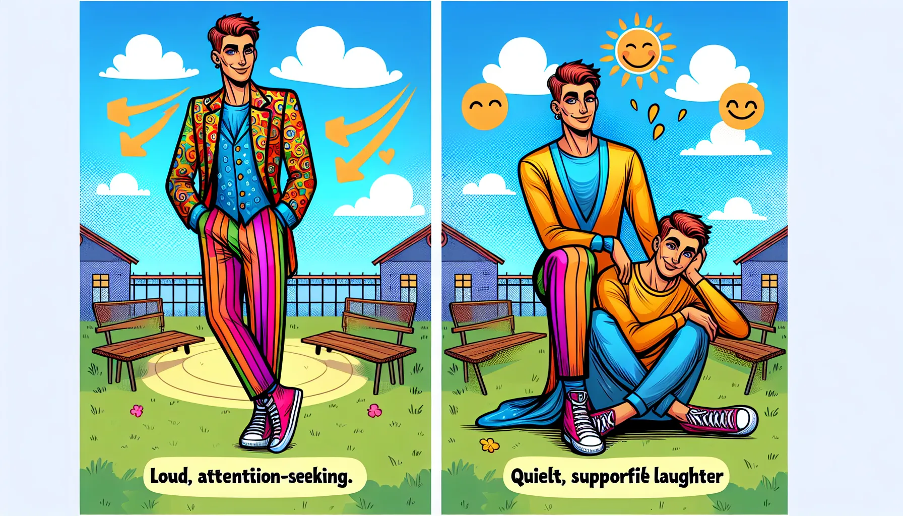 Glavni sukob vrti se oko dva potpuno suprotna karaktera. Veliki smijeh je onaj tip osobe koju svi poznajemo—glasan, traži pozornost, uvijek mora biti centar zbivanja. Mali smijeh? Potpuna suprotnost. Pronalazi radost u sitnicama, ne treba mu reflektore da bi bio sretan.