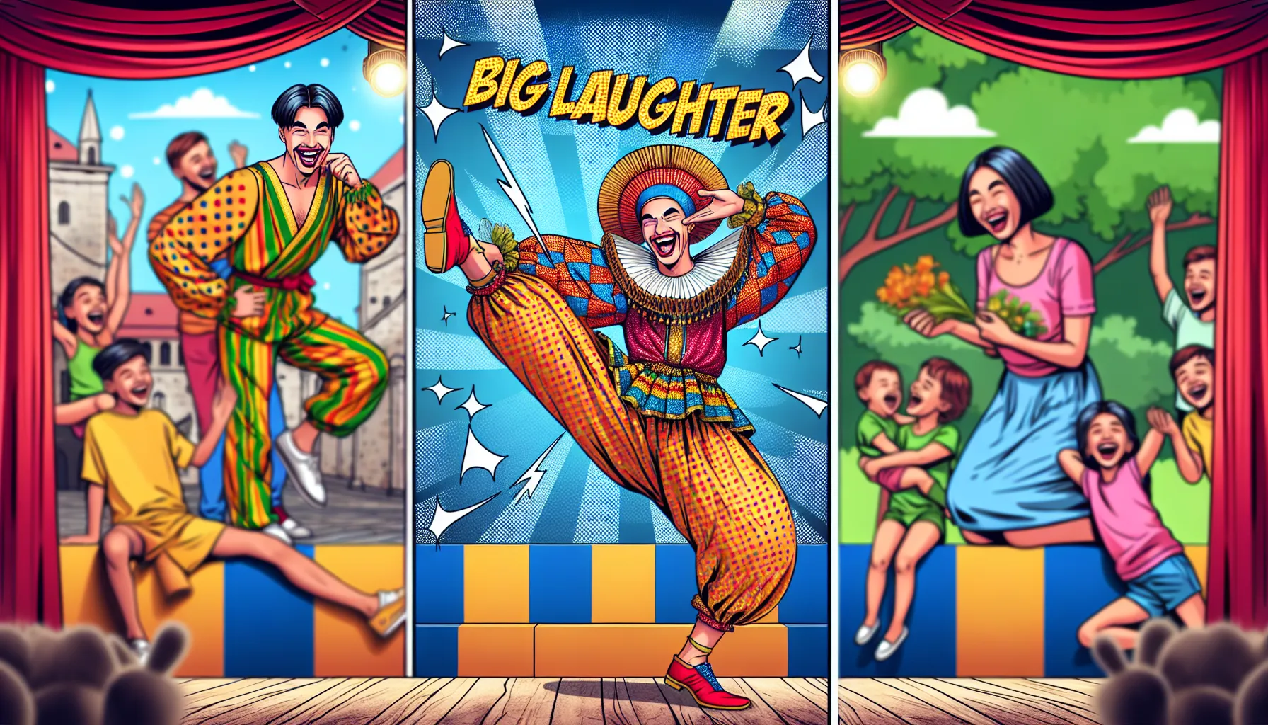 Priča se otvara upoznavanjem s dva protagonista koji su – ironično – potpuno suprotni po karakteru. Veliki smijeh se ponaša kao prava diva… traži pozornico, reflektore i aplauze publike! Ovaj smijeh se ne zadovoljava običnim trenucima – njemu trebaju velike dvorane, škole, cirkusi i kazališta gdje može pokazati svoju važnost.